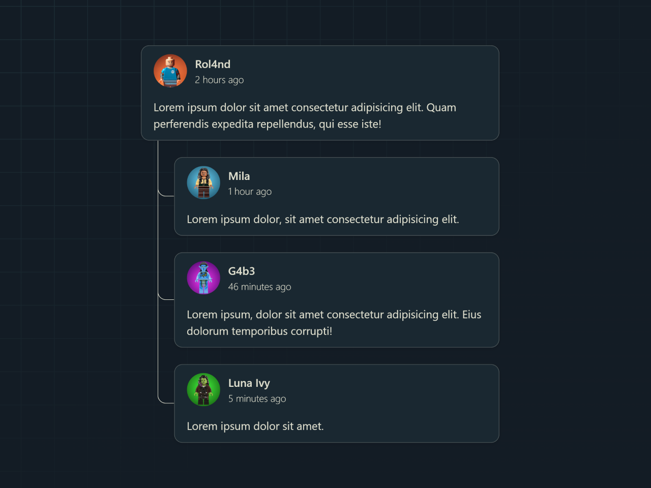 Now, let’s bring your UI to life with CSS. These styles will create an attractive and readable layout for your comments and replies. We use modern CSS features like @layer for organization and anchor-name for precise positioning to connect replies visually.